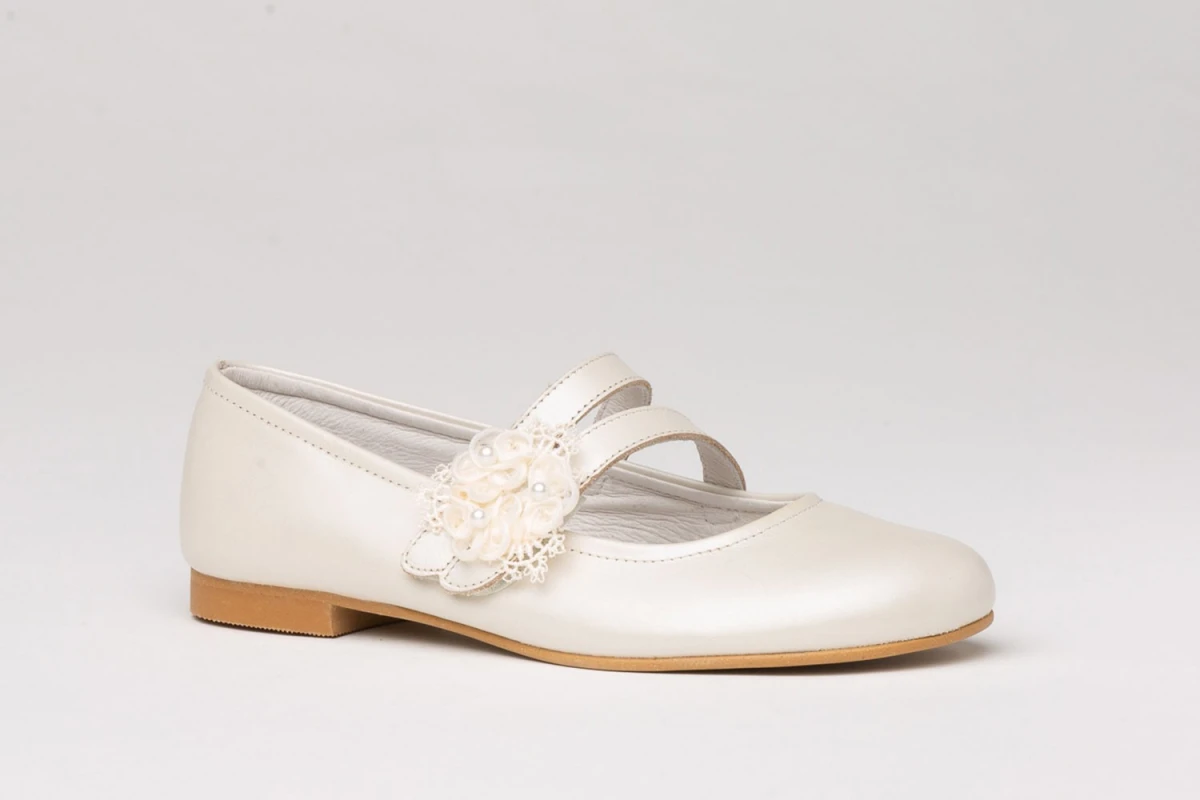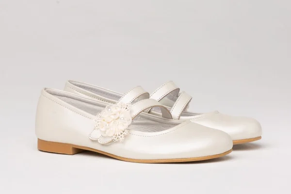 Hay momentos en la vida que son mágicos por sí solos. Elegantes y cómodos, zapato tipo bailarina con adorno Tul & Perlas y sistema de cierre de velcro fabricado en napa nacarada de piel bovina. La parte interior está fabricada con forro de piel natural, protector de punteras y talones, planta con puente anatómico y suela de cuerolite antideslizante. Calzado diseñado y fabricado en España ideal para celebraciones.