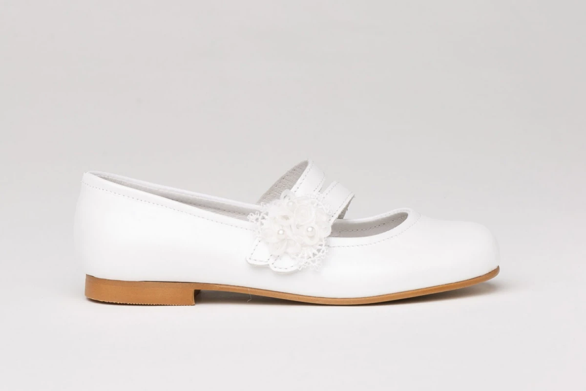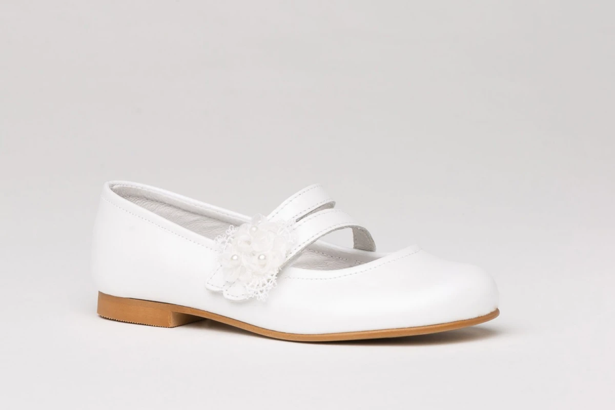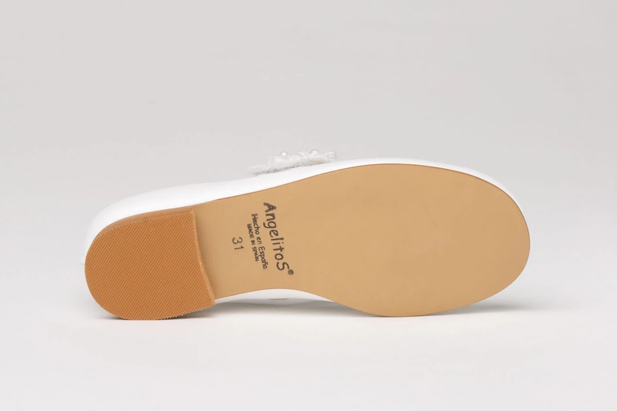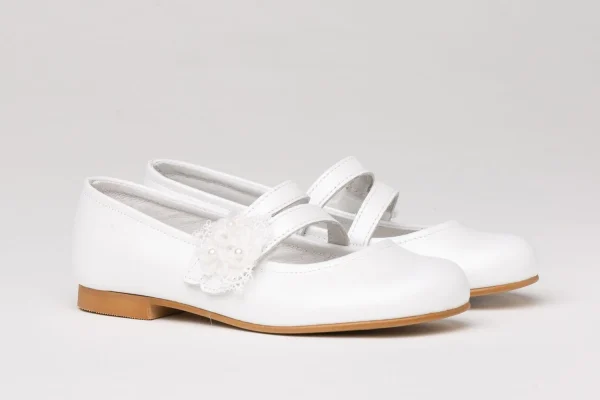 Hay momentos en la vida que son mágicos por sí solos. Elegantes y cómodos, zapato tipo bailarina con adorno Tul & Perlas y sistema de cierre de velcro fabricado en napa nacarada de piel bovina. La parte interior está fabricada con forro de piel natural, protector de punteras y talones, planta con puente anatómico y suela de cuerolite antideslizante. Calzado diseñado y fabricado en España ideal para celebraciones.