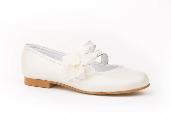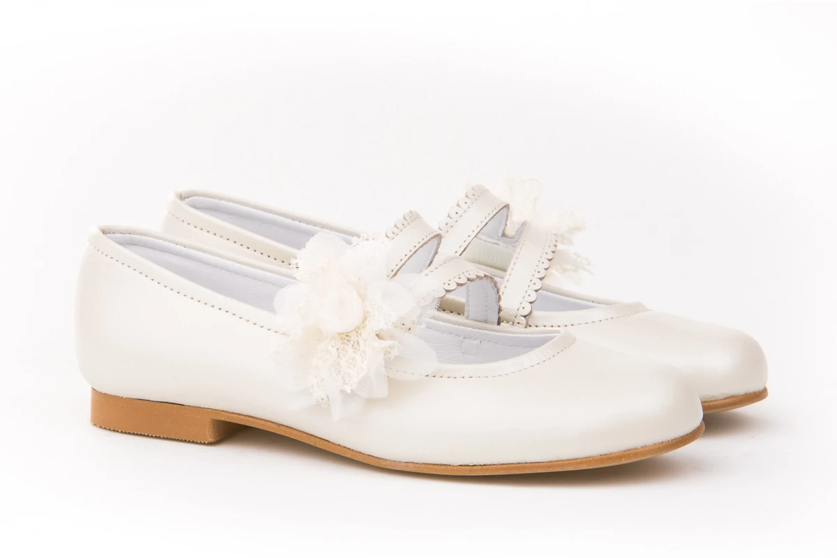 Hay momentos en la vida que son mágicos por sí solos. Elegantes y cómodos, zapato tipo bailarina con adorno Flor Encaje & Tul y sistema de cierre de velcro fabricado en napa nacarada de piel bovina. La parte interior está fabricada con forro de piel natural, protector de punteras y talones, planta con puente anatómico y suela de cuerolite antideslizante. Calzado diseñado y fabricado en España ideal para celebraciones.