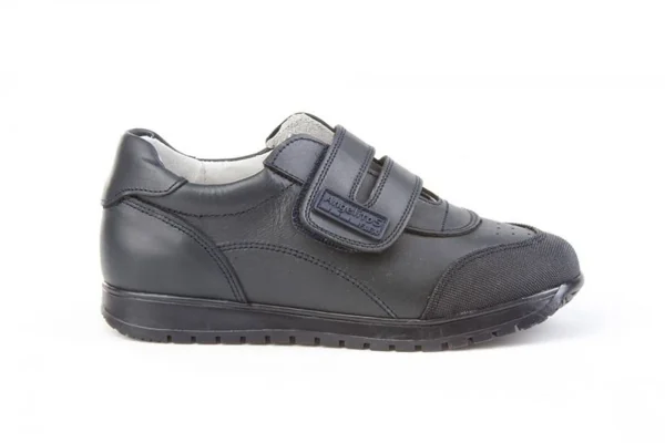 Unos deportivos para el cole, suaves y flexibles. Zapato tipo deportivo fabricado en napa de piel bovina con sistema de cierre de velcro. La parte interior está fabricada con forro de piel natural, protector de puntera de PVC reforzado, protector de punteras y talones, planta con puente anatómico y suela de goma antideslizante. Deportivo colegial. Calzado diseñado y fabricado en España.
