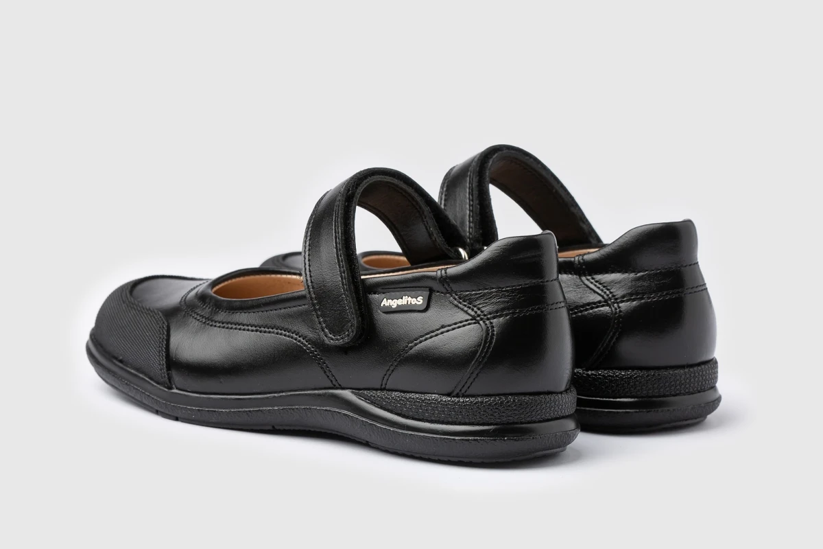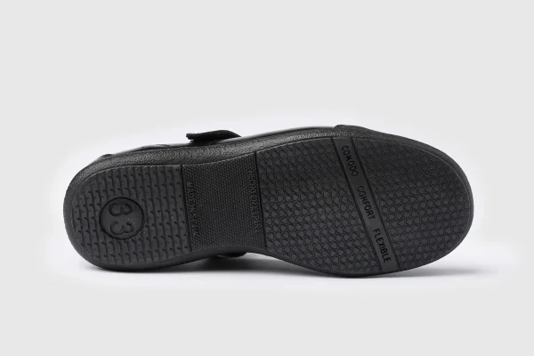 ANG-462: Zapatos escolares resistentes y cómodos para el día a día. Con puntera reforzada, suela antideslizante y ajuste seguro con velcro, garantizan durabilidad y soporte para los pies de tus hijos en cada paso. Estilo clásico y funcionalidad para la escuela.