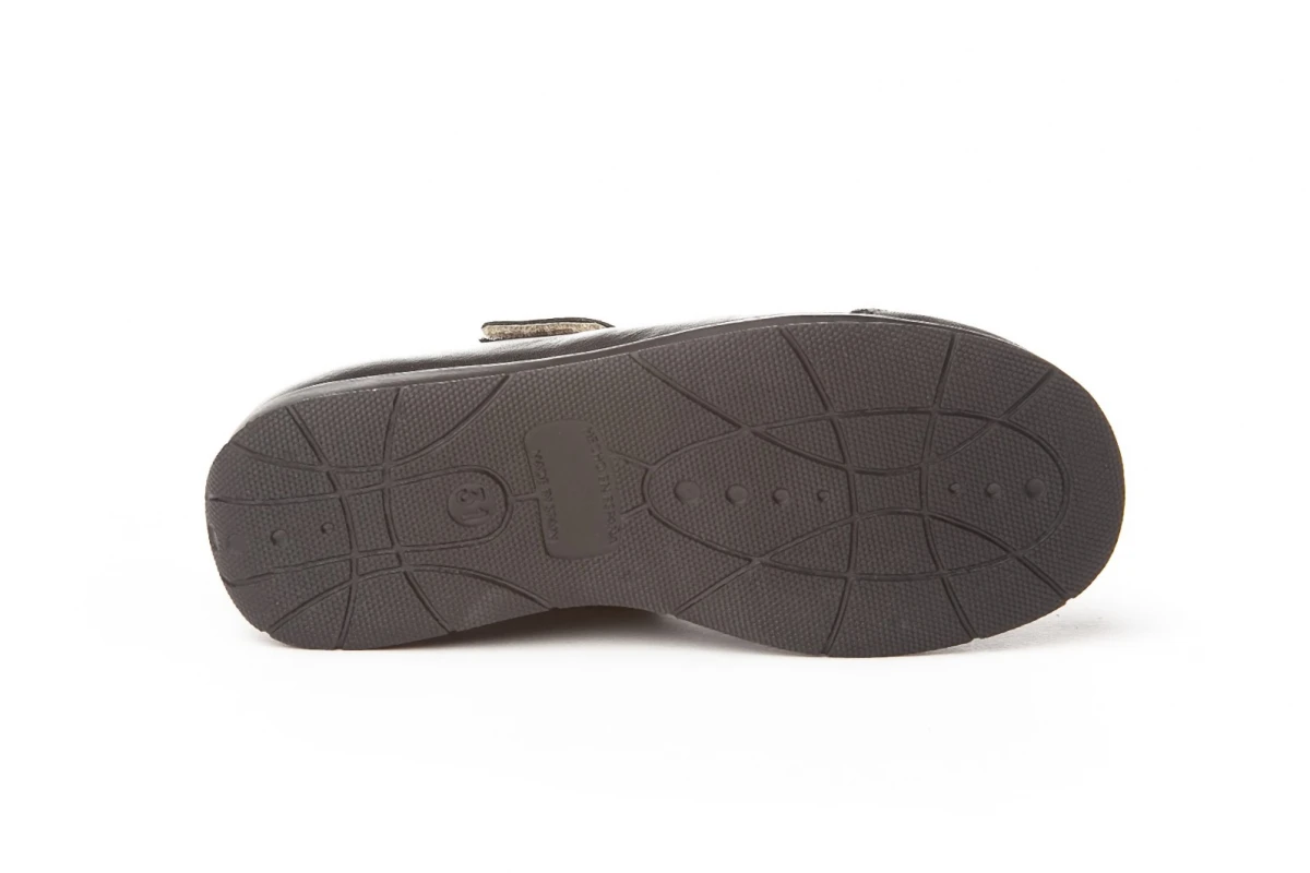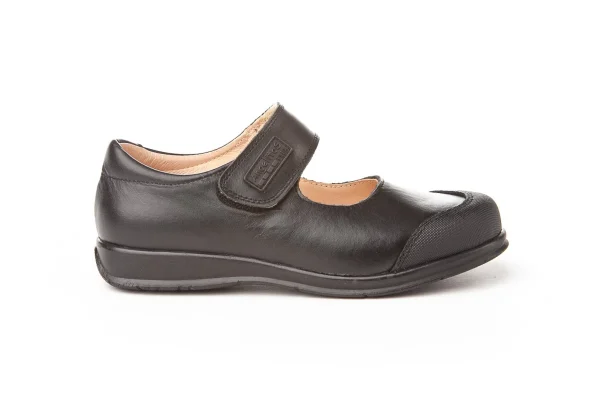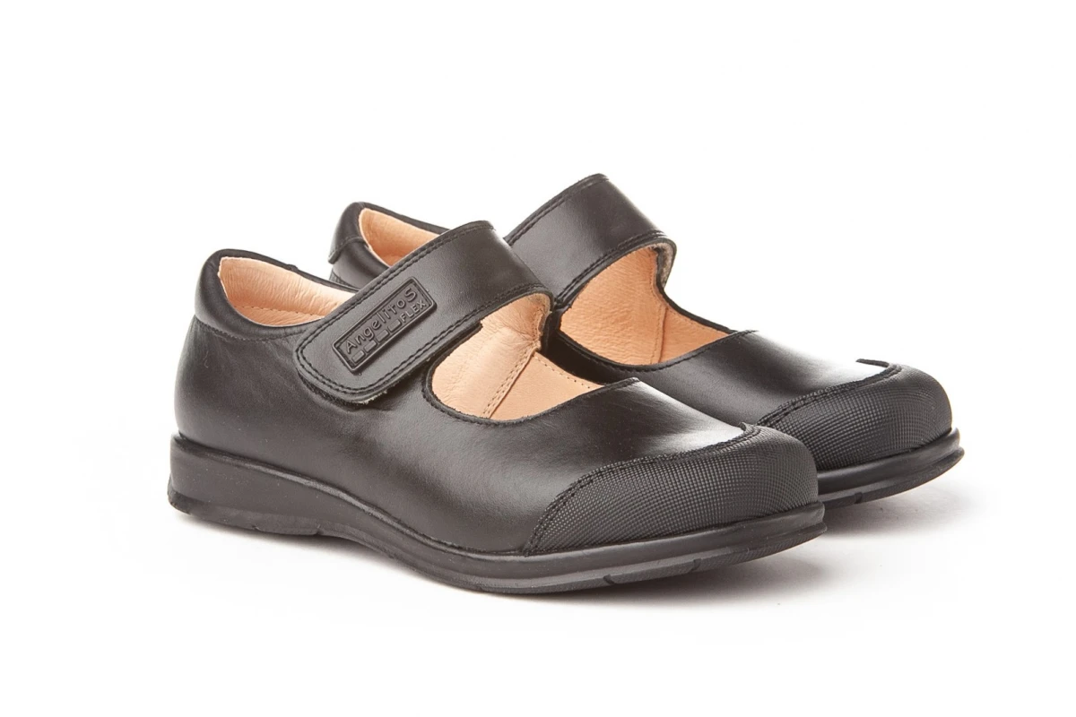 Una línea clásica. Cómodos y flexibles, ideales para los uniformes de cole. Zapato tipo mercedita colegial con puntera de PVC reforzado fabricado en napa de piel bovina con sistema de cierre velcro. La parte interior está fabricada con forro de piel natural, protector de punteras y talones, planta con puente anatómico y suela de goma antideslizante. Calzado diseñado y fabricado en España.