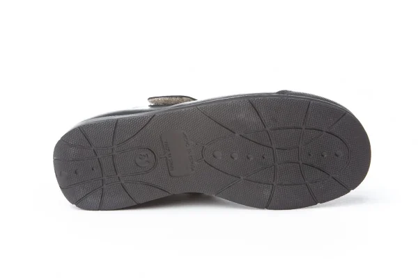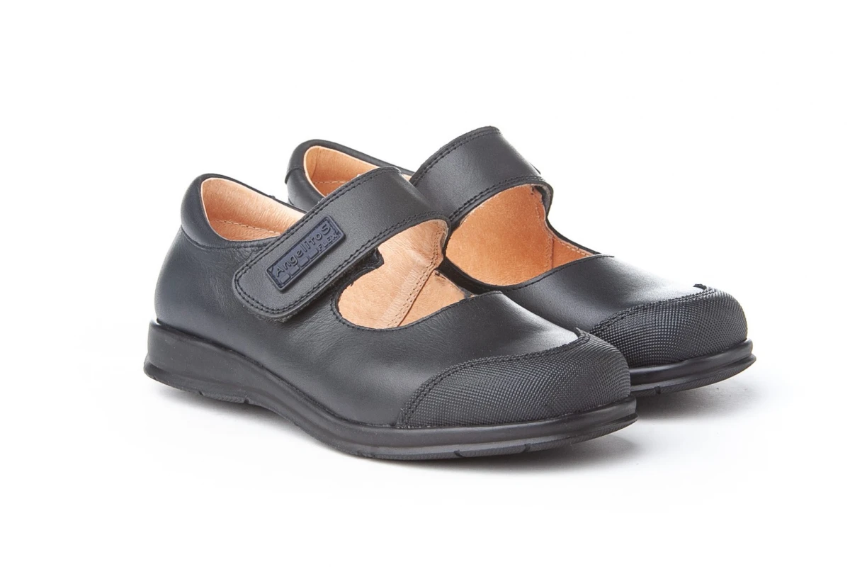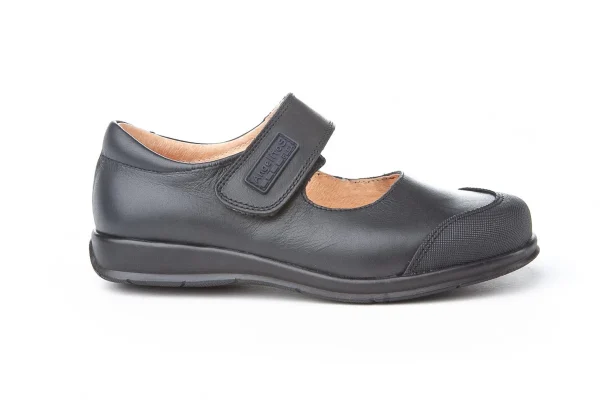 Una línea clásica. Cómodos y flexibles, ideales para los uniformes de cole. Zapato tipo mercedita colegial con puntera de PVC reforzado fabricado en napa de piel bovina con sistema de cierre velcro. La parte interior está fabricada con forro de piel natural, protector de punteras y talones, planta con puente anatómico y suela de goma antideslizante. Calzado diseñado y fabricado en España.