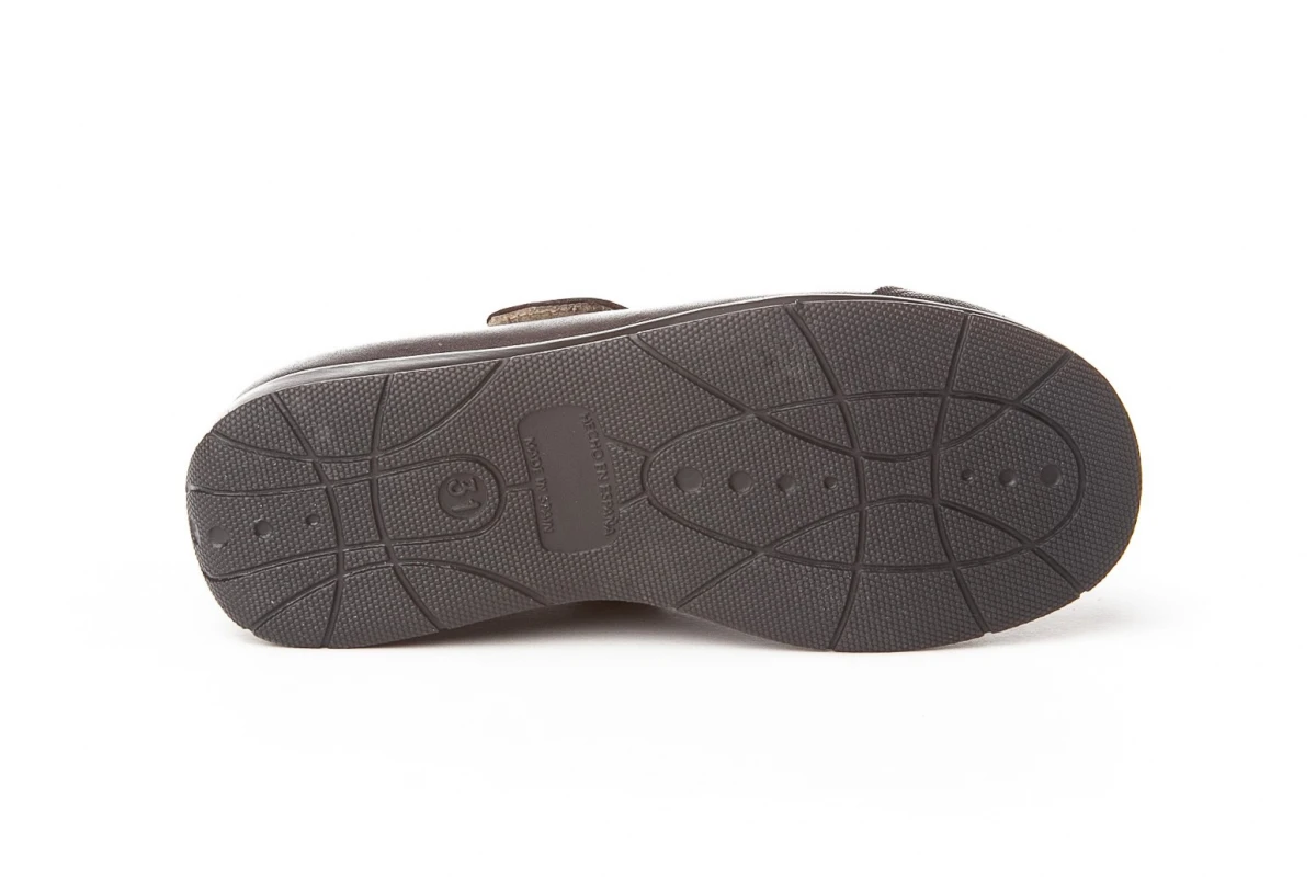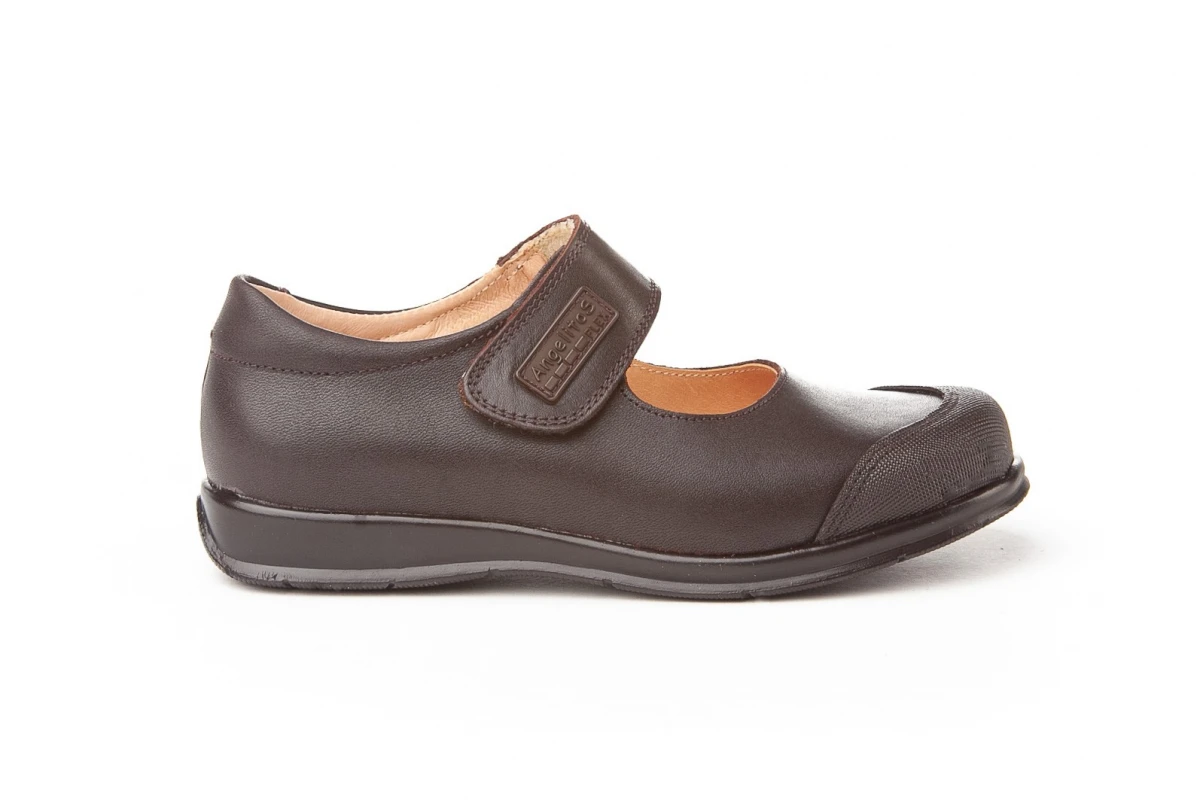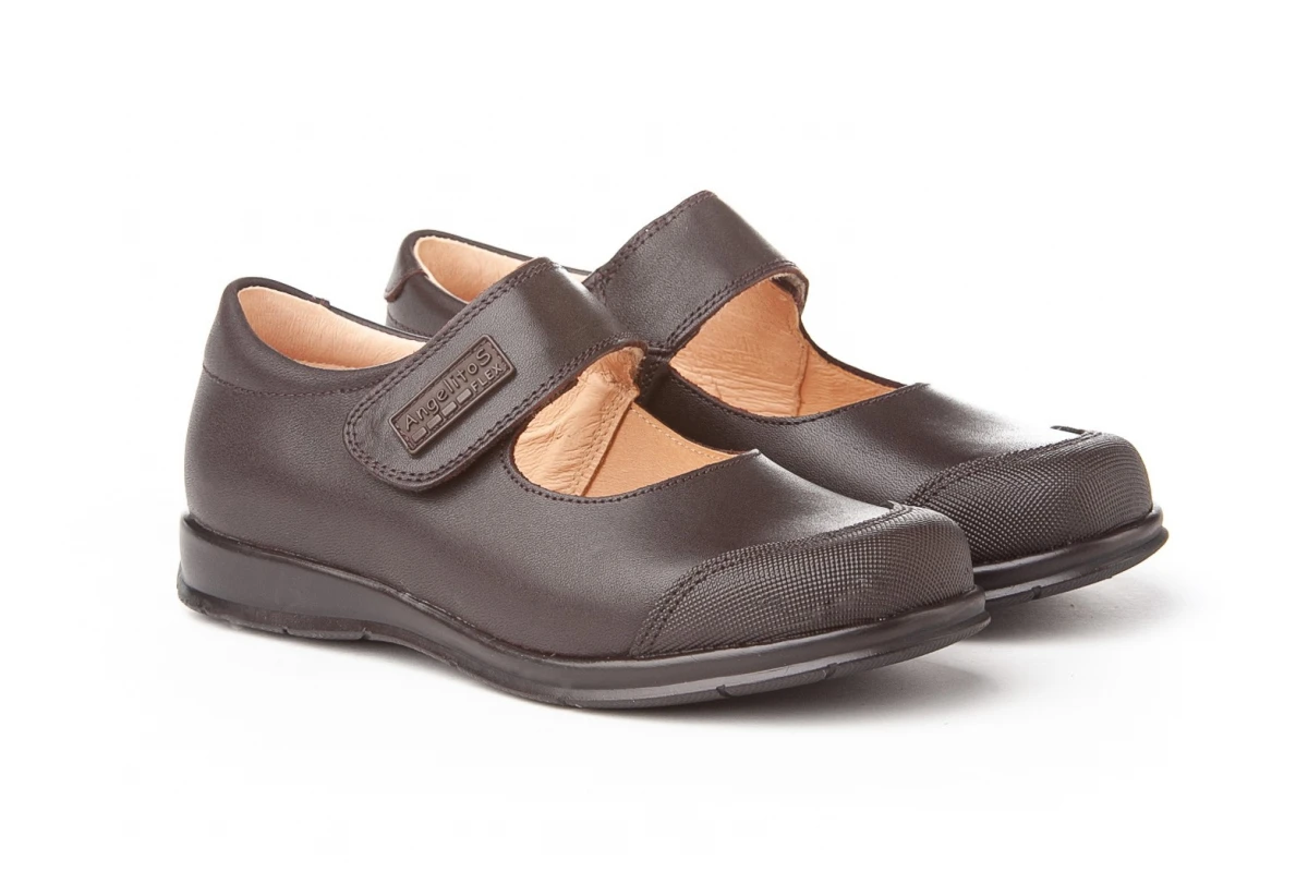 Una línea clásica. Cómodos y flexibles, ideales para los uniformes de cole. Zapato tipo mercedita colegial con puntera de PVC reforzado fabricado en napa de piel bovina con sistema de cierre velcro. La parte interior está fabricada con forro de piel natural, protector de punteras y talones, planta con puente anatómico y suela de goma antideslizante. Calzado diseñado y fabricado en España.