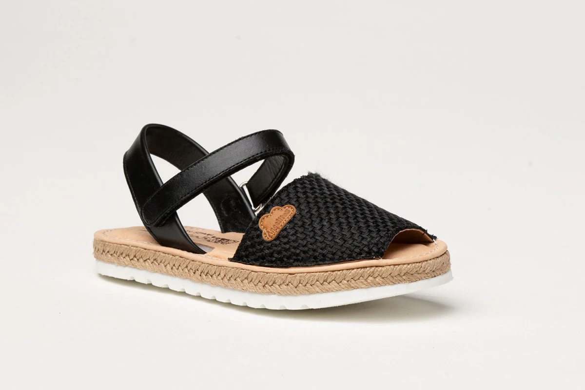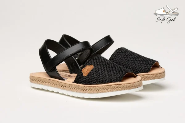 Unas menorquinas ligeras, suaves y flexibles. Zapato tipo menorquina fabricado en napa de piel bovina y tejido saco 100 % algodón con sistema de cierre de velcro Go & Back. La parte interior está fabricada con forro de piel natural, planta forrada de piel con gel-látex y memory foam. Suela de EVA de alta calidad antideslizante con yute natural. Calzado diseñado y fabricado en España.