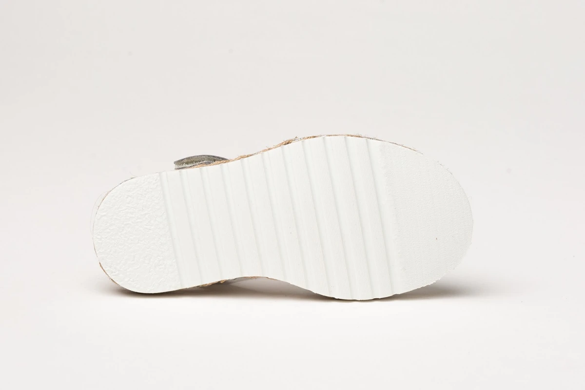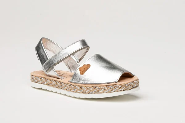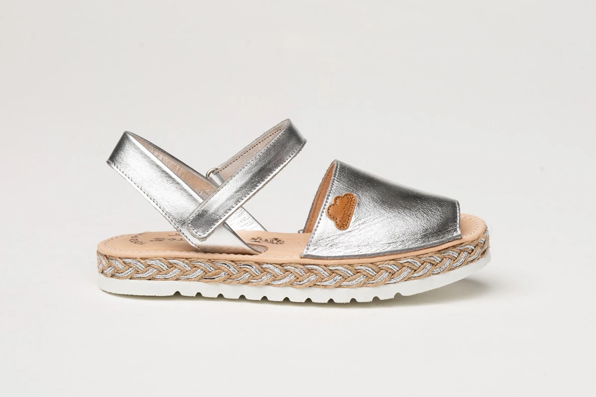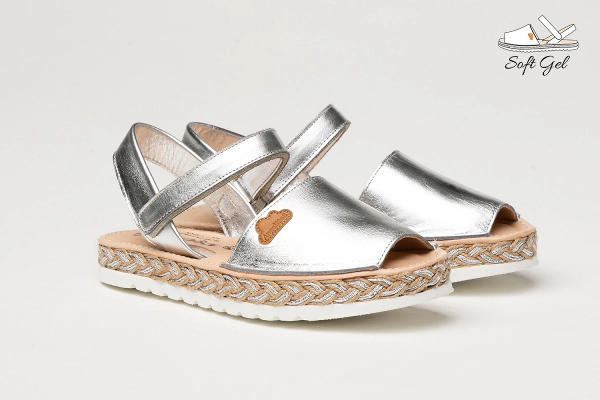 Unas menorquinas ligeras, suaves y flexibles. Zapato tipo menorquina fabricado en napa metalizada de piel bovina con sistema de cierre de velcro Go & Back. La parte interior está fabricada con forro de piel natural, planta forrada de piel con gel-látex y memory foam. Suela de EVA de alta calidad antideslizante con yute natural. Calzado diseñado y fabricado en España.
