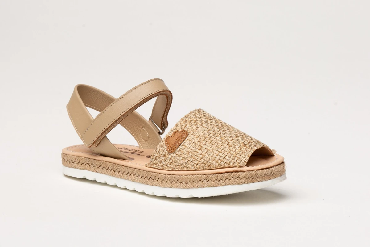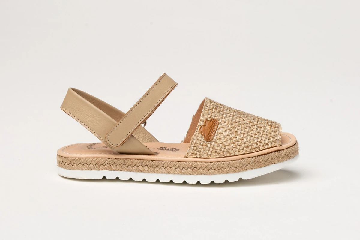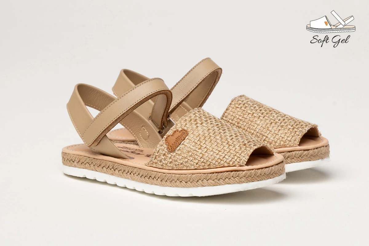 Unas menorquinas ligeras, suaves y flexibles. Zapato tipo menorquina fabricado en napa de piel bovina y tejido saco 100 % algodón con sistema de cierre de velcro Go & Back. La parte interior está fabricada con forro de piel natural, planta forrada de piel con gel-látex y memory foam. Suela de EVA de alta calidad antideslizante con yute natural. Calzado diseñado y fabricado en España.