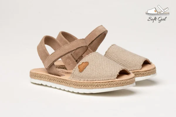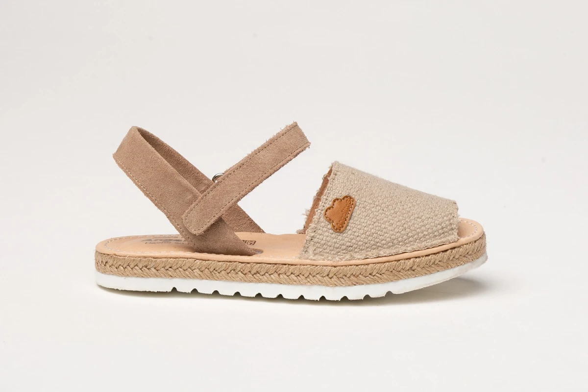 Unas menorquinas ligeras, suaves y flexibles. Zapato tipo menorquina fabricado en napa de piel bovina y tejido saco 100 % algodón con sistema de cierre de velcro Go & Back. La parte interior está fabricada con forro de piel natural, planta forrada de piel con gel-látex y memory foam. Suela de EVA de alta calidad antideslizante con yute natural. Calzado diseñado y fabricado en España