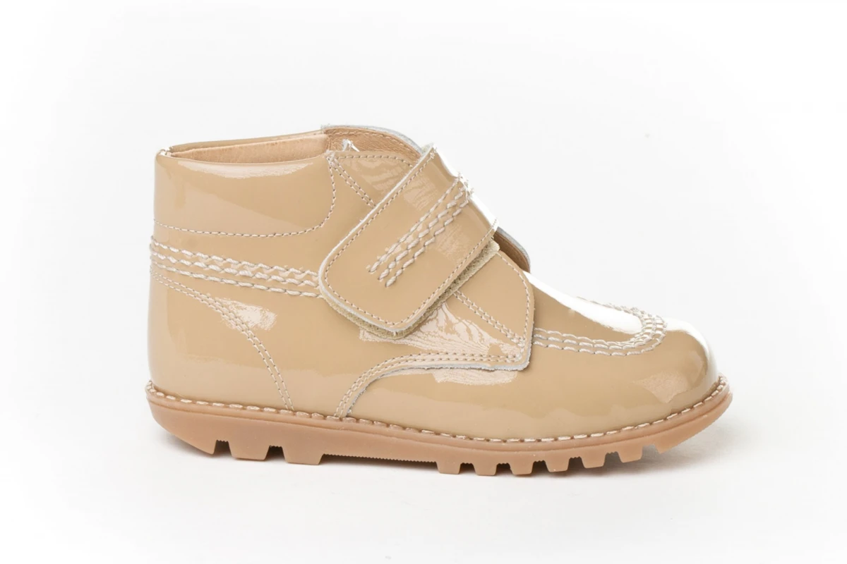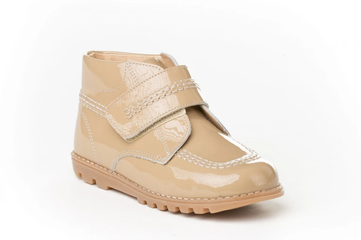 Las botas de Billy de siempre. Cómodas y flexibles, zapato tipo botita fabricado en charol de piel bovina con sistema de cierre de velcro. La parte interior está fabricada con forro de piel natural, protector de punteras y talones, planta con puente anatómico y suela de goma antideslizante. Calzado diseñado y fabricado en España.