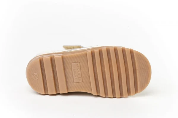 Calzado infantil diseñado para garantizar confort y estabilidad en cada paso, con suela antideslizante que aporta seguridad al caminar. Elaborado en materiales resistentes y de fácil limpieza, su cierre de velcro ofrece ajuste rápido y preciso. Ideal para uso diario, combina funcionalidad y cuidado artesanal.