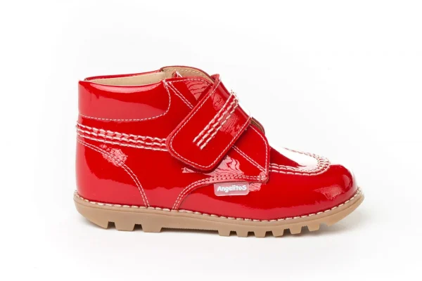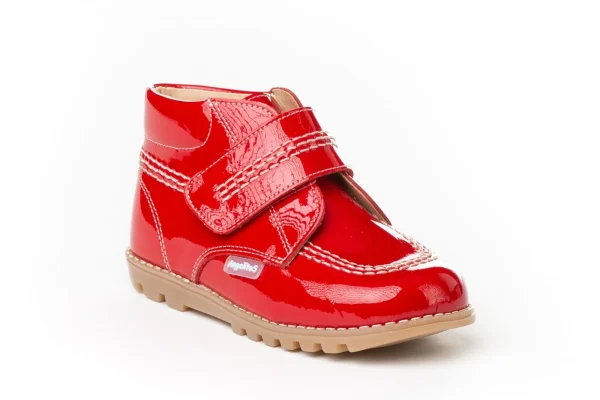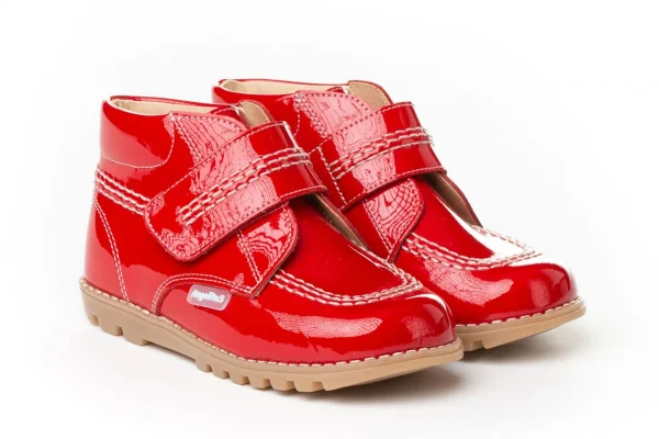 Las botas de Billy de siempre. Cómodas y flexibles, zapato tipo botita fabricado en charol de piel bovina con sistema de cierre de velcro. La parte interior está fabricada con forro de piel natural, protector de punteras y talones, planta con puente anatómico y suela de goma antideslizante. Calzado diseñado y fabricado en España.