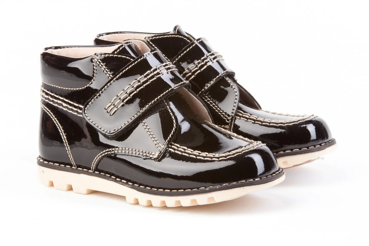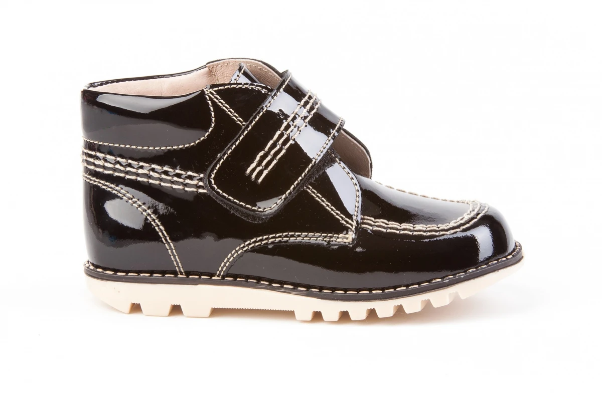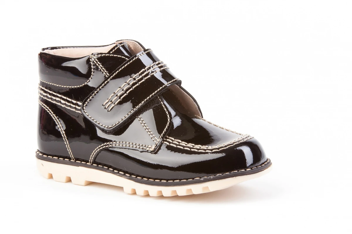 Las botas de Billy de siempre. Cómodas y flexibles, zapato tipo botita fabricado en charol de piel bovina con sistema de cierre de velcro. La parte interior está fabricada con forro de piel natural, protector de punteras y talones, planta con puente anatómico y suela de goma antideslizante. Calzado diseñado y fabricado en España.