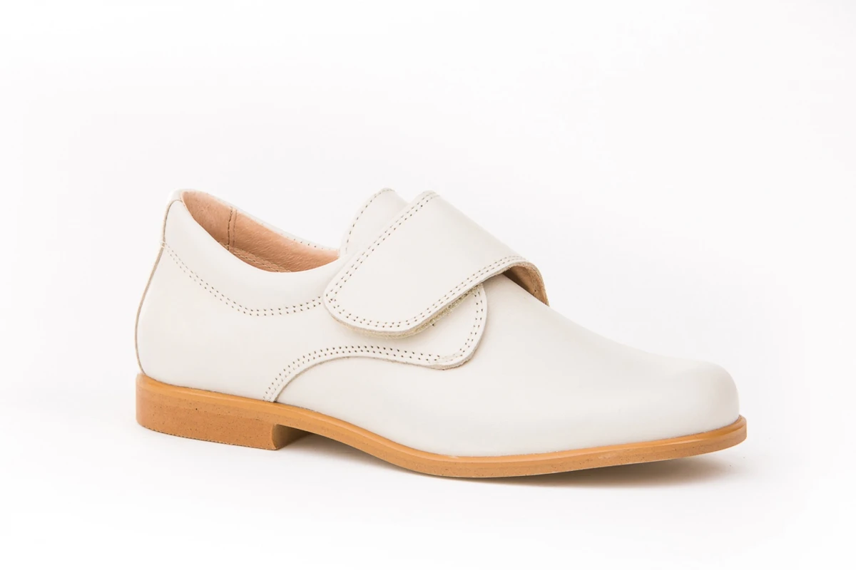 Hay momentos en la vida que son especiales por sí solos. Sofisticados y cómodos, zapato tipo blucher con sistema de cierre de velcro fabricado en napa de piel bovina. La parte interior está fabricada con forro de piel natural, protector de punteras y talones, planta con puente anatómico y suela de cuerolite antideslizante. Calzado diseñado y fabricado en España ideal para celebraciones.
