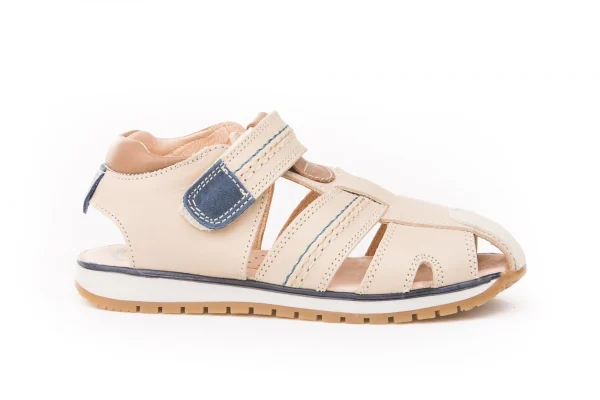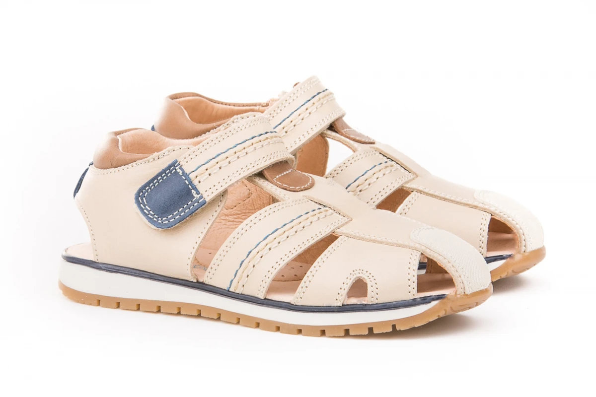 Unas sandalias modernas, suaves y flexibles. Zapato tipo sandalia fabricado en napa savoy de piel bovina con sistema de cierre de velcro Go & Back. La parte interior está fabricada con forro de piel natural, protector de puntera de PVC reforzado, planta con puente anatómico y suela de goma antideslizante. Calzado diseñado y fabricado en España.