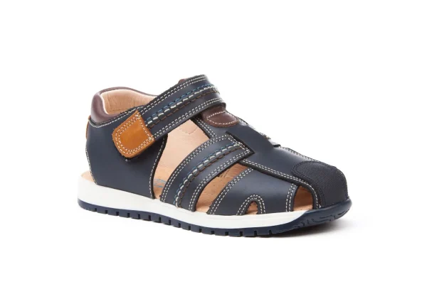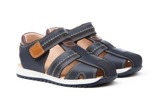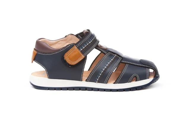 Unas sandalias modernas, suaves y flexibles. Zapato tipo sandalia fabricado en napa savoy de piel bovina con sistema de cierre de velcro Go & Back.